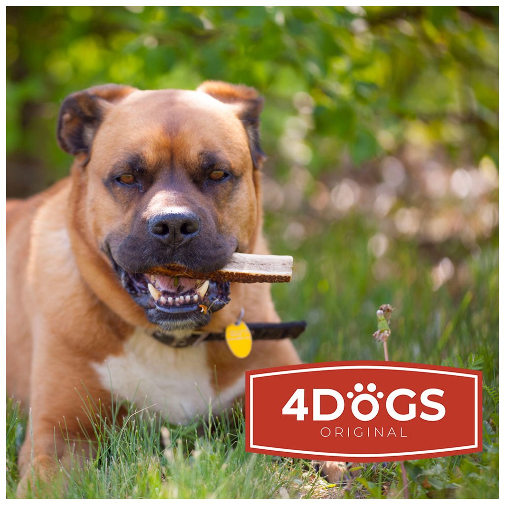 Rodinná firma 4DOGS si dává záležet na tom, aby její psí pamlsky byly 100% přírodní a vyhotovené v nejlepší možné kvalitě. Psi si zamilovali čerstvé a správně ošetřené paroží pro psy, ale i další vychytávky, jako jsou arašídová másla, himálajské tyčky nebo pomalu sušené hovězí žvýkačky. Vše bez zbytečné chemie a konzervantů. S úctou k přírodě a zvířatům.
