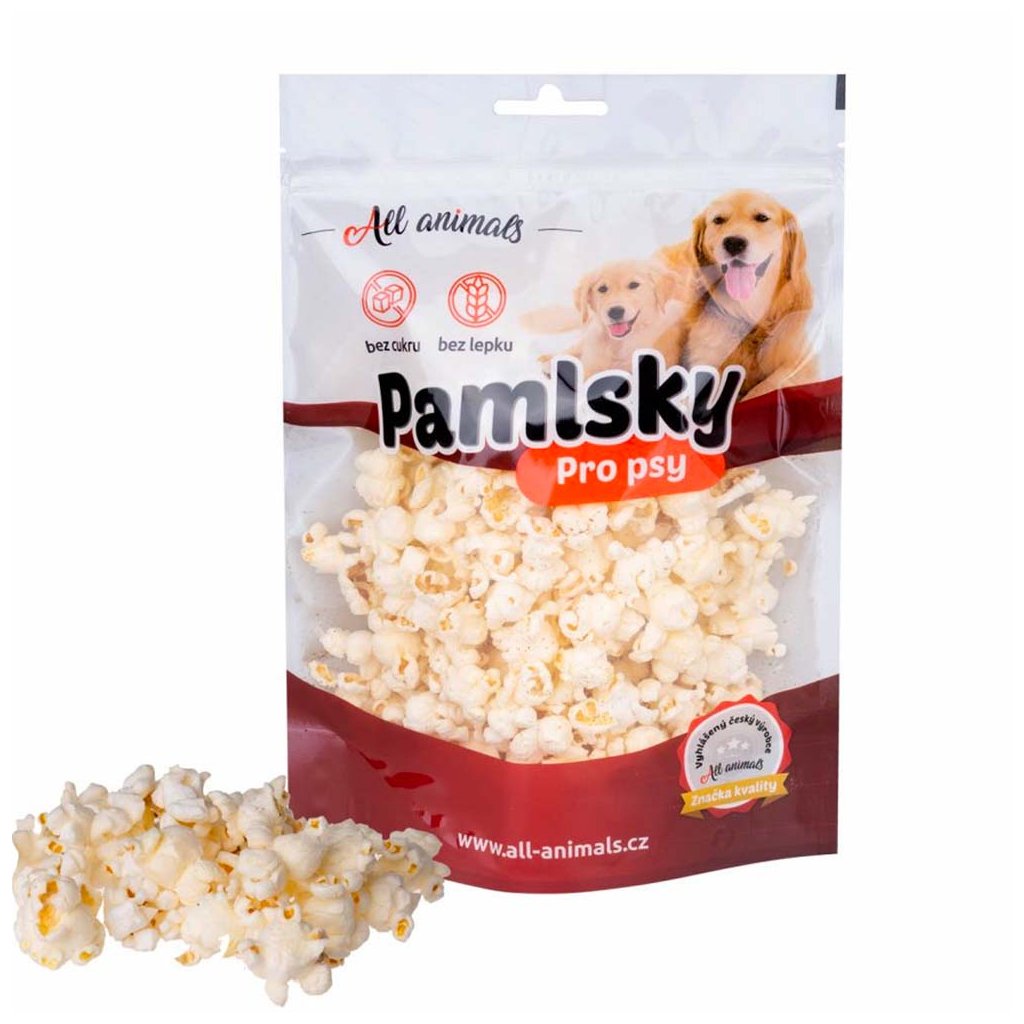 Přírodní pamlsek pro psy. Bez umělých ochucovadel, barviv a nesmyslných náhražek. Vyrobeno v Česku.Křupavý popcorn pro psy od české značky All Animals je vypukaný pouze za použití horkého vzduchu. Bez soli, tuku nebo palmového oleje. Mleté sušené hovězí maso propůjčuje popcornu masovou chuť.