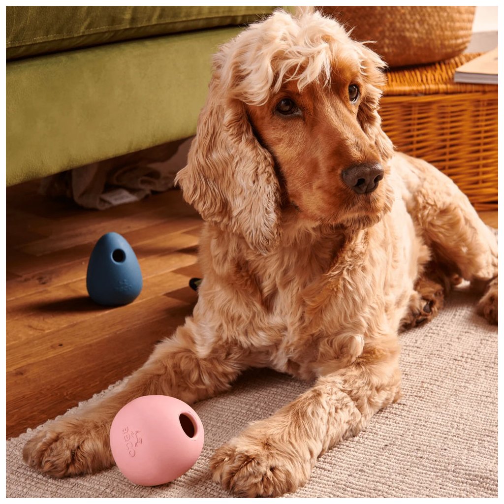 Míček z přírodního kaučuku, který skáče a kolébá se a má otvor pro schování pamlsků. Díky své lehké konstrukci je vhodný i pro použití v interiéru, protože nevytváří hluk a vibrace. Přírodní kaučuk využívá to nejlepší z přírody: je odolný, pevný a dostatečně pružný i pro psy, kteří rádi žvýkají.