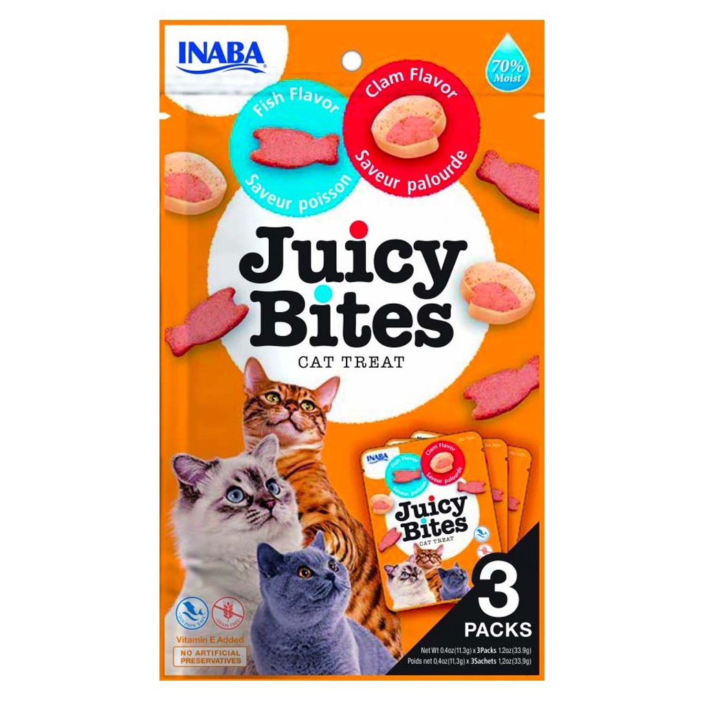 Doplňkové krmivo pro kočky.Juicy Bites jsou neodolatelně šťavnaté pamlsky s rybou a škeblí, obohacené přírodními příchutěmi, výtažkem ze zeleného čaje a vitamínem E.
