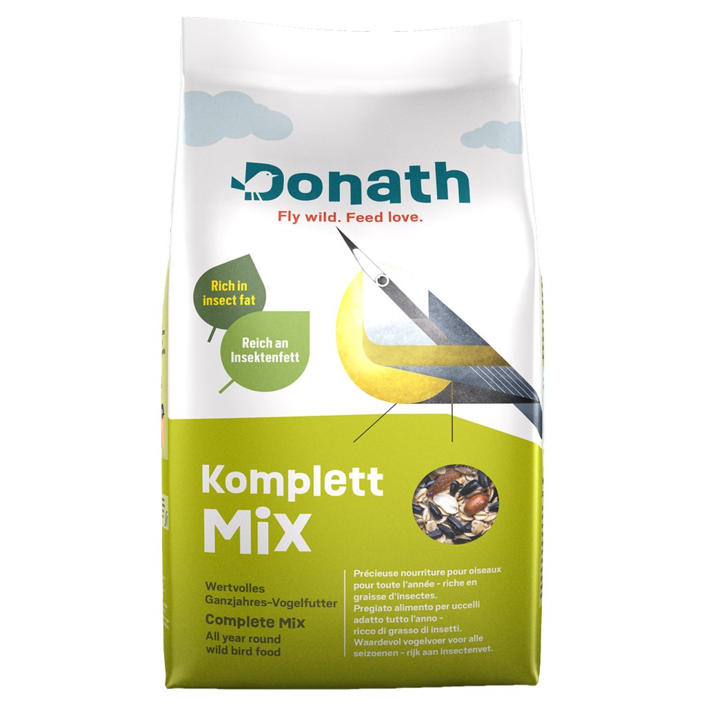 Complete Mix od značky Donath obsahuje na živiny bohaté složení včetně ovesných vloček, slunečnicových semínek, hrozinek, konopných semínek, arašídů, minerálů a hmyzího tuku, který se získává z přibližně 3 000 kusů hmyzu na kilogram. Pestrá krmná směs zajišťuje ptákům přísun všech důležitých živin, které potřebují pro své zdraví a vitalitu.