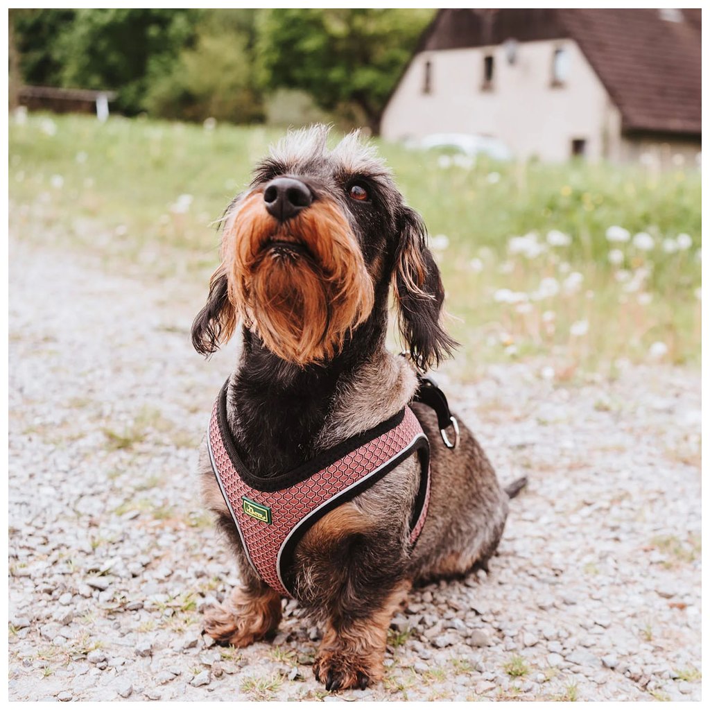 Postroj je pro psy pohodlný, nijak je neomezuje v pohybu. Dobře přenáší tažnou sílu do celého těla. Doporučujeme ho také pro psy, kterým jsou klasické postroje s popruhy nepříjemné. Během horkých dnů můžete postroj namočit do vody a použít ho jako chladící postroj, protože dobře saje vodu. Reflexní prvky z materiálu Scotchlite™ od společnosti 3M™ se postarají o dobrou viditelnost a bezpečnost vašeho psa i během zhoršených světelných podmínek.