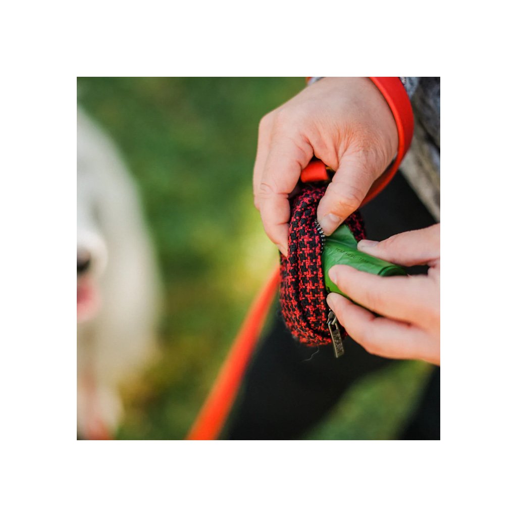 Zásobník na sáčky na psí hovínka. Vyrobený z upcyklovaných materiálů.Sbírání psích hovínek ještě nikdy nebylo stylovější. Designový zásobník na sáčky P.L.A.Y. můžete snadno připnout na vodítko nebo na pásek, takže budete mít sáčky vždycky po ruce. Už žádné výmluvy, když je potřeba po vašem chlupáčovi uklidit.