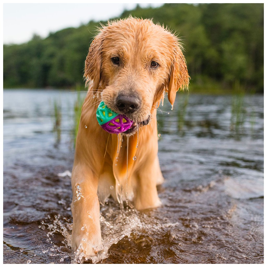 S míčkem Go-Go Astro Ball od značky P.L.A.Y. se váš ocitne jako v jiném světě plném aportování a nikdy nekončící zábavy. Váš pes bude uchvácen, až uvidí míček letět a točit se po obloze, překvapen, když se zakousne do měkké vnější vrstvy a potěšen, když rozpíská tenisový míček, který se nachází uvnitř. Plave na vodě, takže ho nikdy neutopíte. Díky dvěma výrazným barvám je míček dobře vidět na souši i na vodní hladině.
