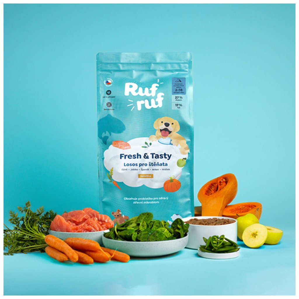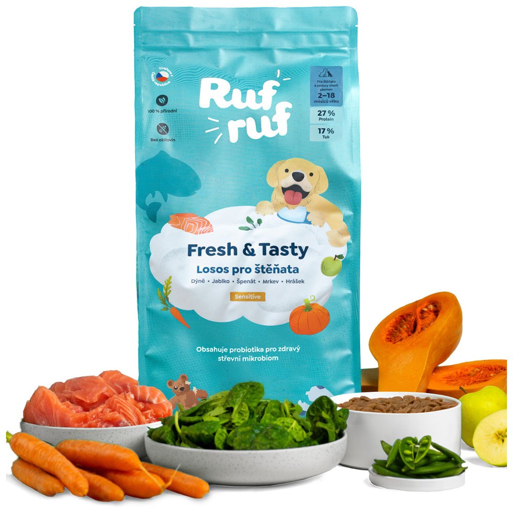 Rufruf Fresh & Tasty Granule pro štěňata Losos se zeleninou a probiotiky 2 kg