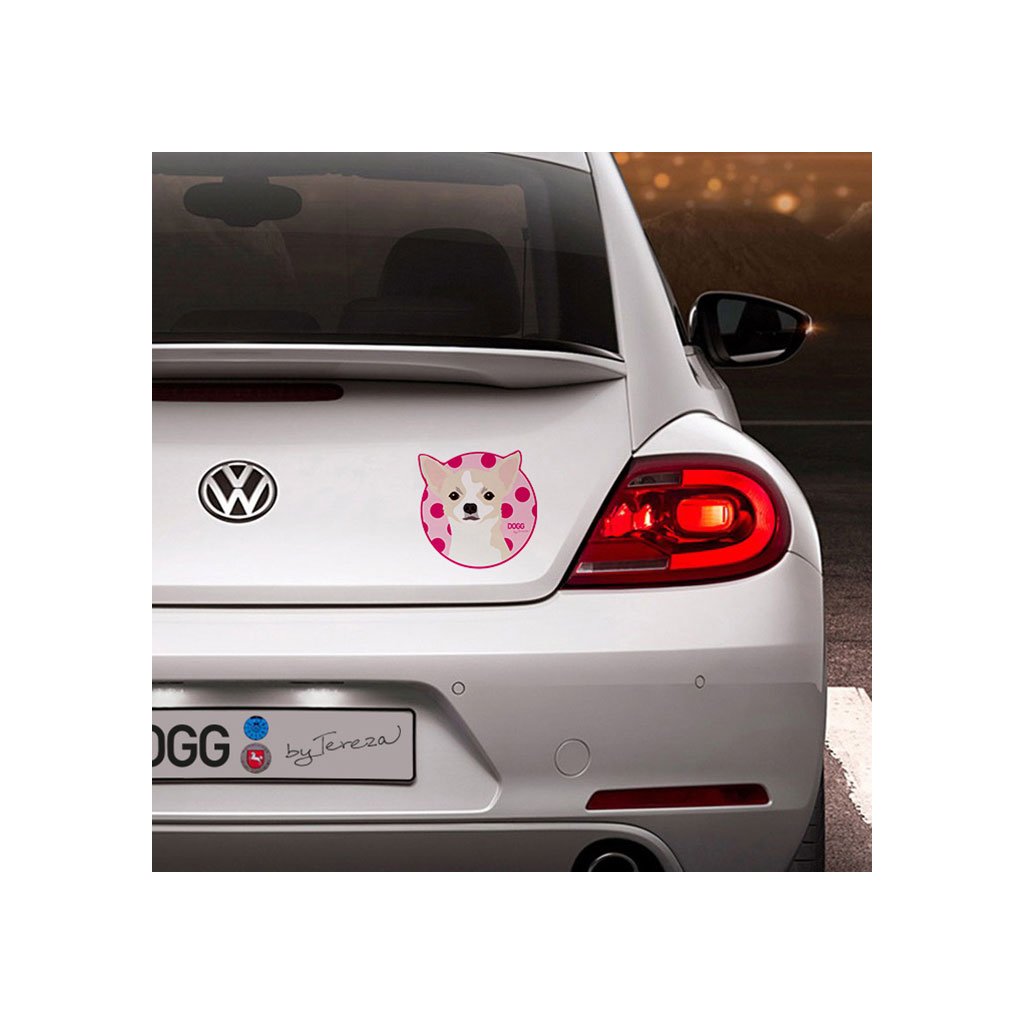 Samolepka s autorskou kresbou čivavy. Vhodné pro použití v interiéru i exteriéru.Váš pes teď bude stále s vámi, ať půjdete kamkoliv! Vyzdobte vaše auto, notebook, poštovní schránku nebo cokoliv jiného, co vás jen napadne. Naše kvalitní samolepky s tématikou psů mají široké použití, takže se vaší kreativitě meze nekladou. Díky ochranné fólii mají samolepky dlouhou životnost a jsou vhodné i pro použití venku, třeba na autě.