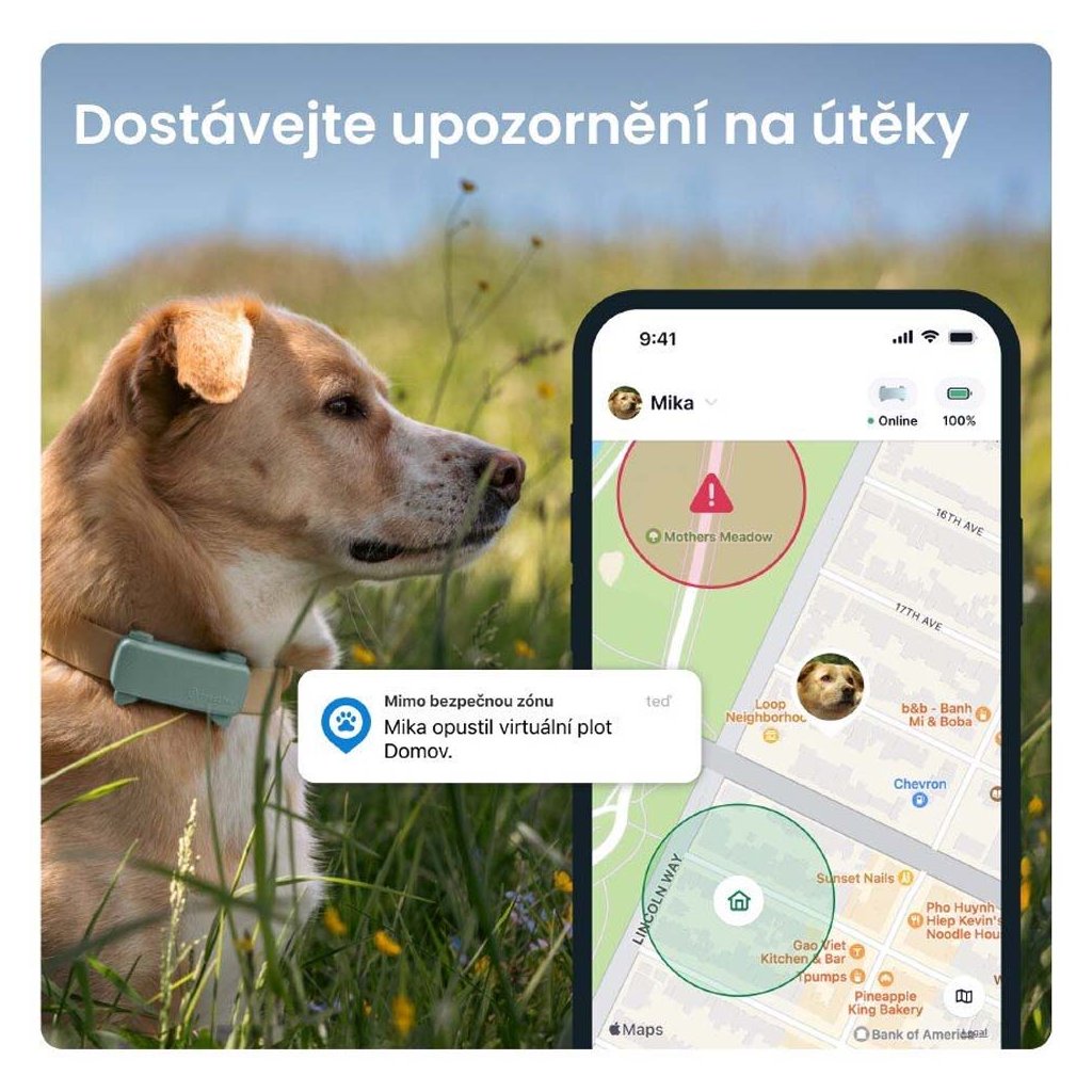 Funkce Virtuálního plotu vám pošle upozornění, když pes opustí oblast, kterou jste označili za bezpečnou. Díky GPS trackeru budete také informováni o aktivitě vašeho psa a zjistíte, jak moc se během dne pohybuje a jaký vliv to má na jeho zdraví a kondici.