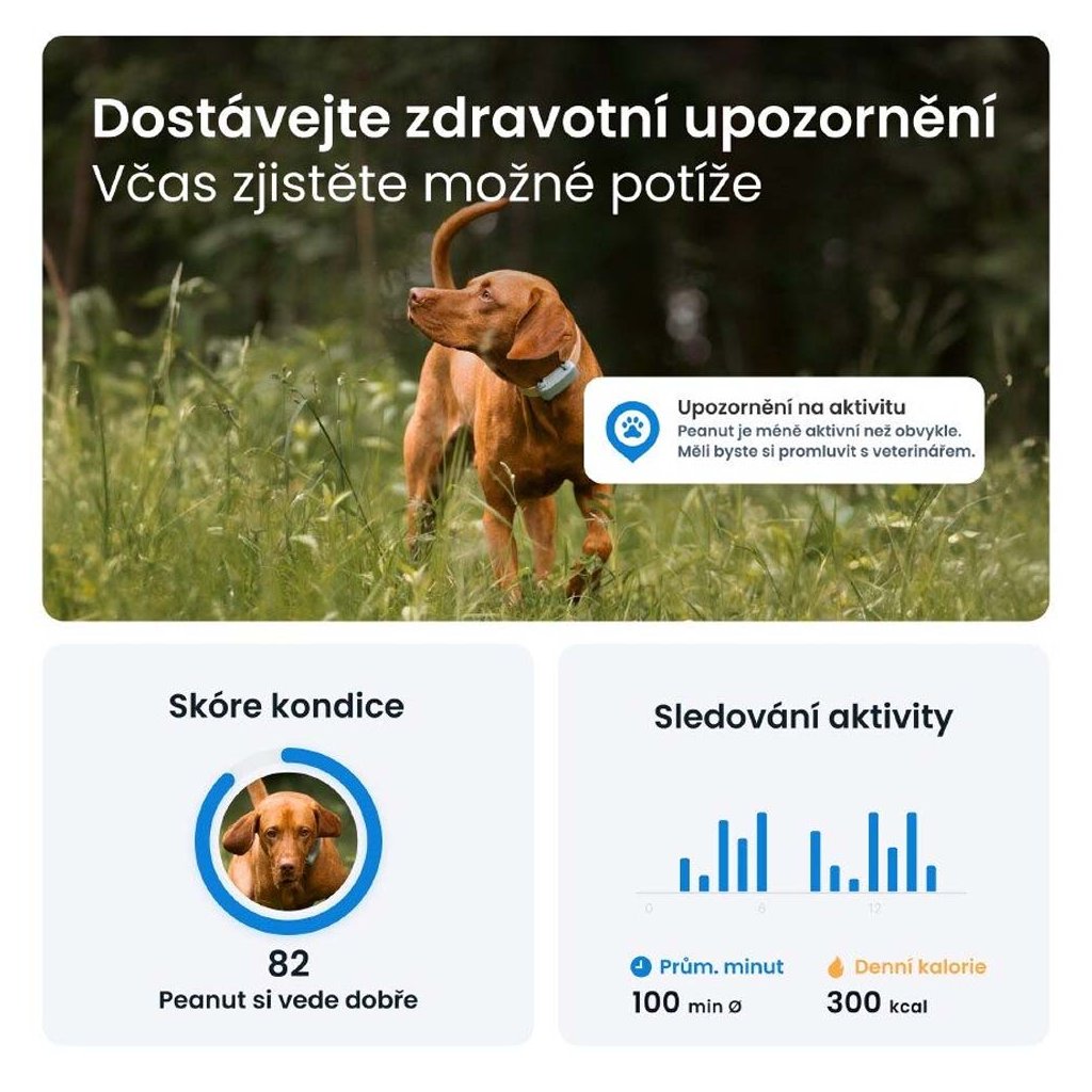 Nabízí vám více informací o úrovních aktivity a pohybu vašeho domácího mazlíčka. Díky těmto datům vás může informovat o zdraví a úrovni kondice vašeho čtyřnohého přítele.