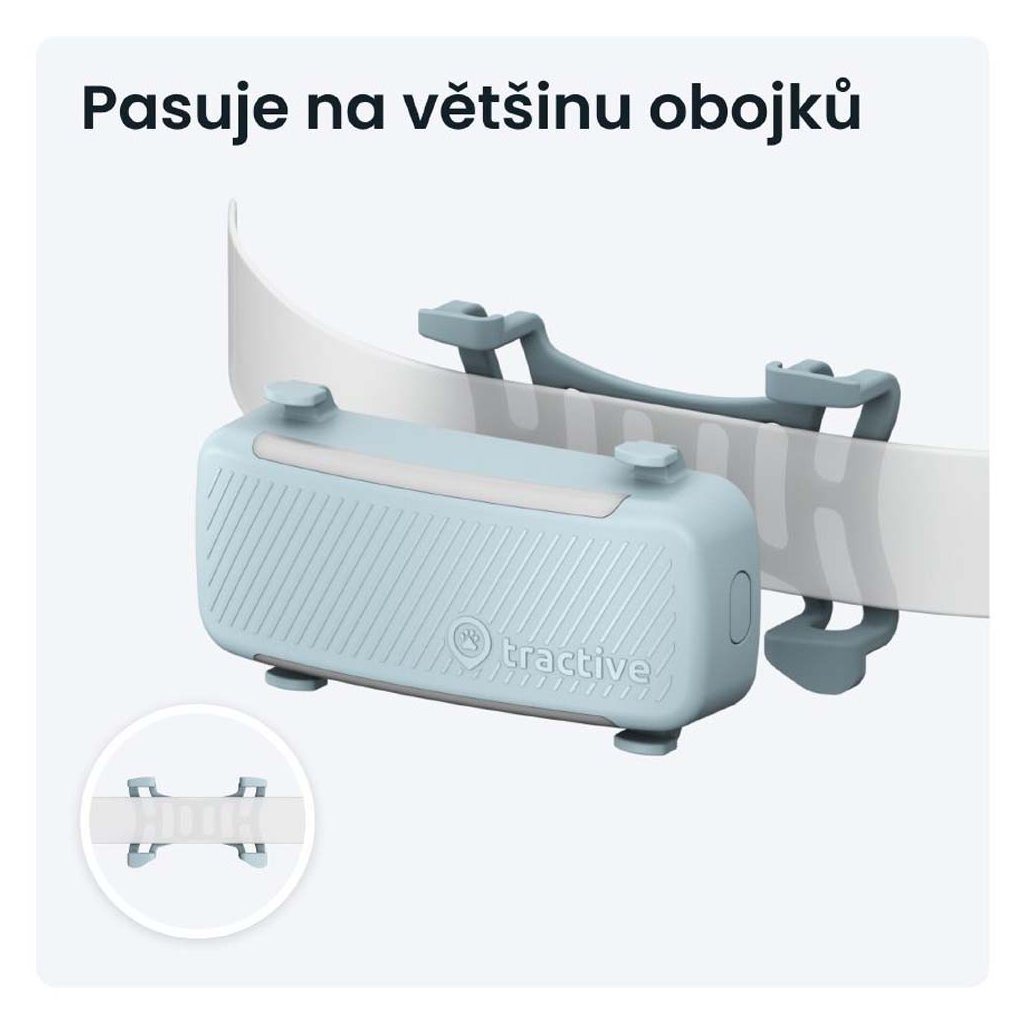 Bezpečně pasuje na většinu psích obojků a postrojů (do šíře 2,8 cm) a psovi nijak nepřekáží. Váží pouze 39 gramů. Vaší Tractive můžete najít i v případě, že vám upadne někde, kde je špatně vidět, třeba v lese, a to díky zesílenému integrovanému LED světlu a reproduktoru.