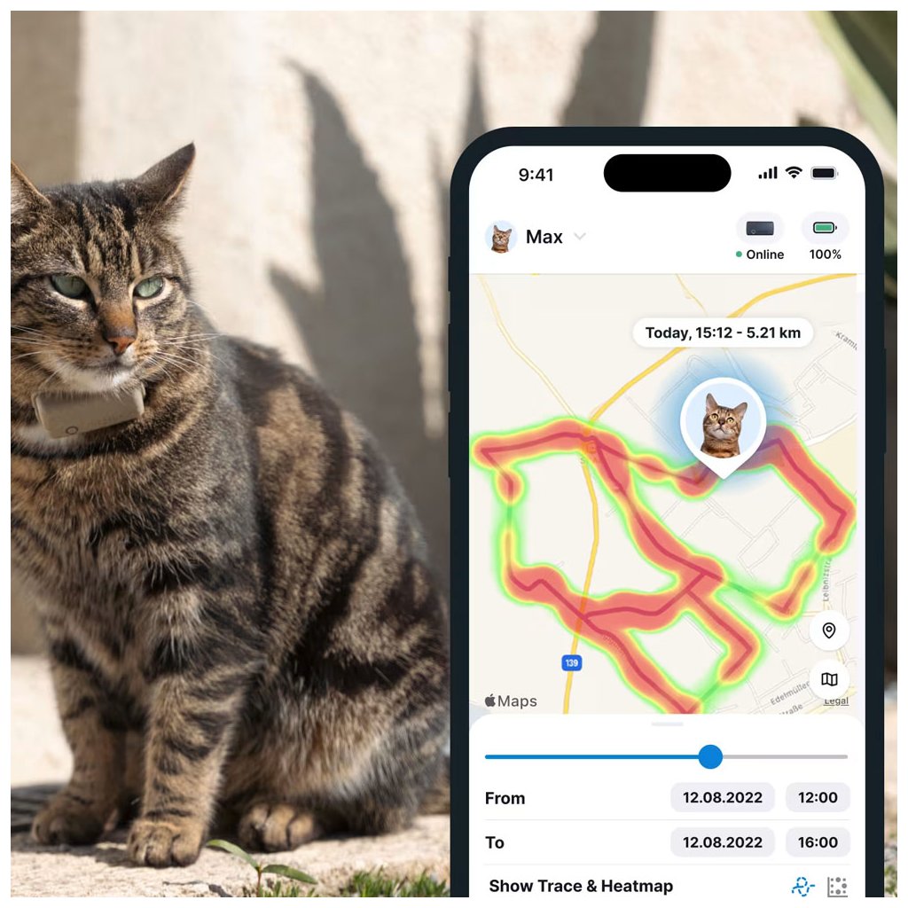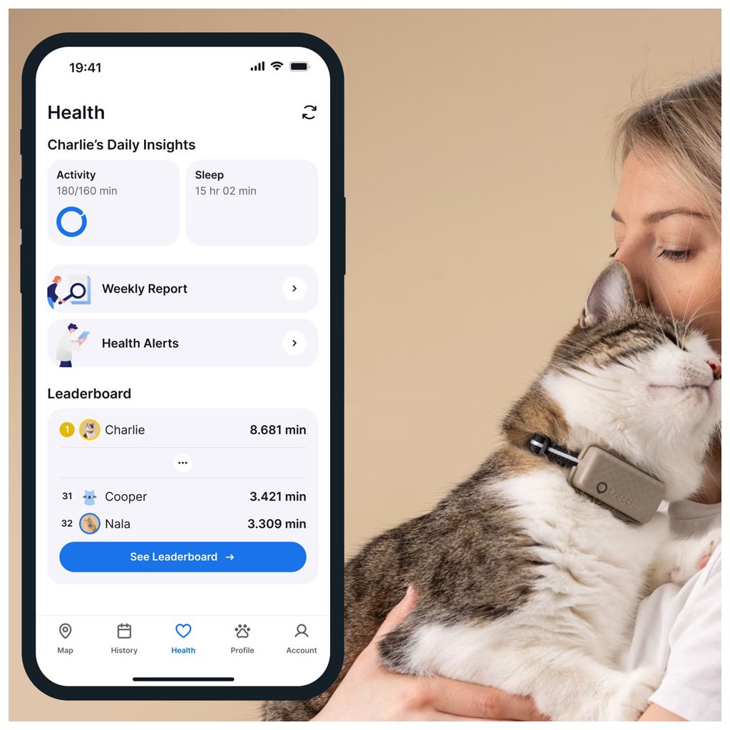 Funkce Virtuálního plotu vám pošle upozornění, když pes opustí oblast, kterou jste označili za bezpečnou. Díky GPS trackeru budete také informováni o aktivitě vaší kočky a zjistíte, jak moc se během dne pohybuje a jaký vliv to má na jeho zdraví a kondici.