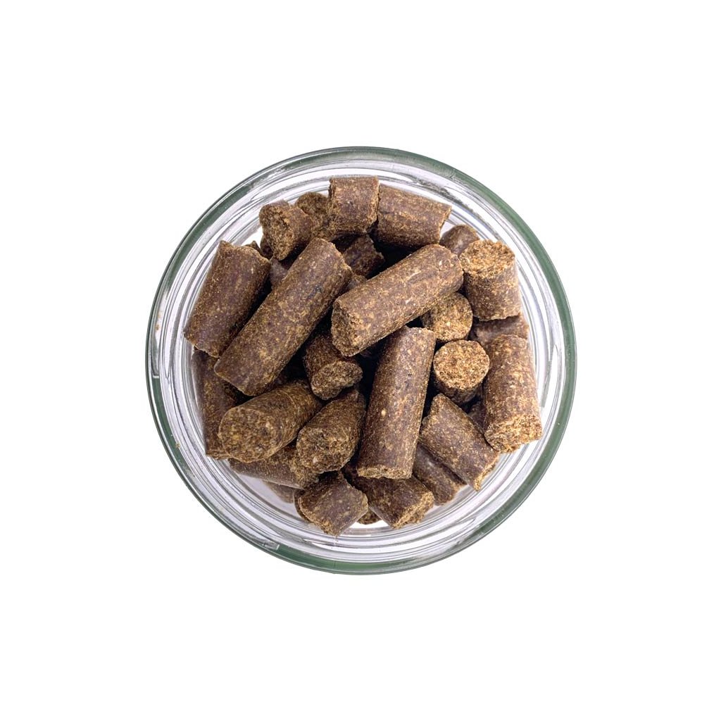 Granule pro psy, lisované za studena. Bez umělých ochucovadel, obilnin a jiných nesmyslných náhražek. Vhodné pro psy středních a velkých plemen.