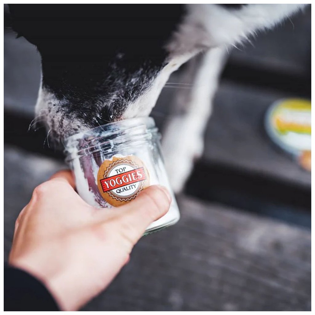 Yoggies jogurt je naprosto přírodní doplněk potravy a pamlsek v jednom. Je to také produkt, který zachránil zažívání Roxyho – psa, díky kterému firma Yoggies vznikla. V každé lžičce obsahuje miliardy prospěšných bakterií, které podporují zdravý střevní mikrobiom, a tím pomáhají zlepšovat imunitu, kvalitu srsti, energii, ale třeba i náladu vašeho čtyřnohého parťáka. Navíc v kvalitě těch nejlepších lidských jogurtů.