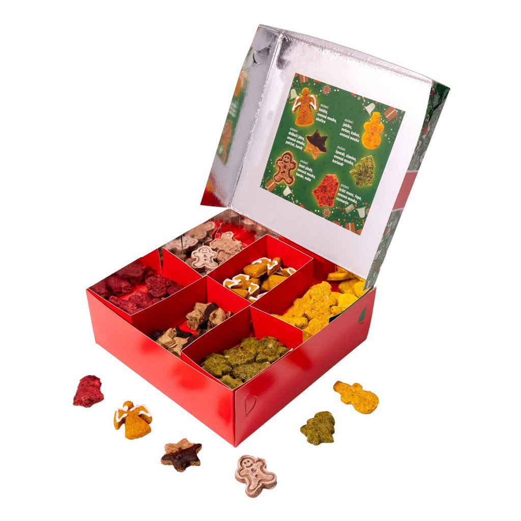 Pamlsky - vánoční cukroví pro psy. Neobsahuje konzervanty, ochucovadla, stabilizátory ani jiná éčka. Vyrobeno v České republice.